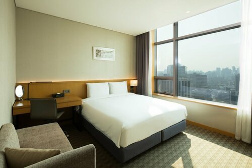 В пешей доступности метро City Holl и MyeongDong, подземный рынок, моллы Lotte Department Store и Shinsegae, множество магазинов и ресторанчиков.