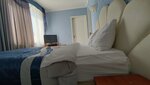 От остановки ходит постоянно 73 маршрутка:от отеля до площади Нахимова мы ехали около 40 мину.Замечательный облагороженный двор,ухоженный бассейн.Навигация по двору с табличками.На ресепшене приветливые администраторы ,быстрое заселение .Спасибо девушкам за их радушие!Нас провели в номер.Проживали в номере Театр!И первое на что мы обратили внимание это огромный потолок метра 3 ,наверное, и запах чистоты. Сам номер светлый,просторный.Имеется все необходимо и даже больше:косметика ,полотенцесушитель,микроволновка,посуда ,чайник ,фен,холодильник,гигиенический душ и роутер для вайфай.Белоснежные полотенца и постельное.В номере помимо одеял были пледы.Уютный балкончик.Номер замечательный,администрация учла наши пожелания у нас были две полуторные кровати -за это отдельная благодарность. Хочется отдельно отметить уборку номера.В номере ОЧЕНЬ чисто! Феи чистоты действительно феи.Тут некоторые писали ,что отель больше для размещения на пару дней,могу поспорить ,даже если не посещать ежедневно Херсонес ,отель расположен замечательно и в городе нет аналогов,проживать там будет комфортно и долгий срок.Что касаемо нюансов :слышимость действительно есть,но это боль всех отелей;подушки неудобные,но это также частая проблема в отелях и дело вкуса.Из пожеланий : было бы здорово пересмотреть фены для волос,при долгой работе ,а у меня длинные волосы ,я сушу дольше-фен перегревался и начинал вонять. Мы обязательно приедем еще.Огромная благодарность управляющим за то,что создали этот уют и всему персоналу ,что отель процветает с вашей помощью. Обязательно вернемся еще!