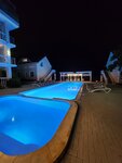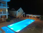 Чудесное место для отдыха. Встретил радушный персонал. Хорошие номера со всем необходимым, добротная мебель, ремонт со вкусом, приятный глазу, кухня в номере с набором различной посуды. Санузел просторный, горячая вода всегда была, напор стабильный. Просторные терассы во всех номерах. Очень ухоженная территория с экзотическими растениями, есть спортивные тренажёры - турник и скамья со штангой, имеются даже контейнеры для раздельного сбора мусора, три мангальные зоны и просто крышесносная смотровая площадка с видом на закат. Конечно, отдельное внимание бассейнам - они идеальные, с подсветкой вечером, чистит робот, на крыше теплый бассейн для видовых фото и в прохладную погоду выручает. Пляж! Вот это как раз феерия! Обязательно брать маску с трубкой! Столько разных рыб в одном месте мы не видели нигде в Крыму, а мы по Крыму уже 10-й отпускной сезон рассекаем.