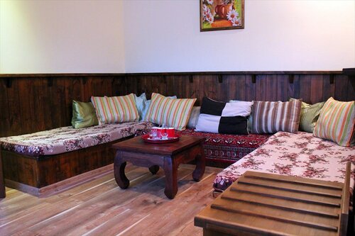 Спокойный отдых со своим уставом.Шумные компании не приветствуются,стандартные номера,зелёный ухоженный дворик,чистый бассейн.Есть завтрак,все по домашнему.