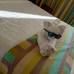 Ну что же! Побывали мы в данном отеле с 1 по 8 января 2026 года на новогодние праздники. С виду отель выглядит красиво, зеленые газоны, пальмы, бассейны и свой не большой аквапарк. Номера делюкс на втором этаже хорошие, ремонт для Египта не плохой, кровати хорошие, балкон большой. Не далеко город, где можно сходить прогуляться и посетить магазины и аптеки. На этом, из того что нам понравилось, наверное все! Сервис-при заезде в номер, не было тапок, халатов, зубных щеток и зубной пасты, мини бар пустой ни напитков не фруктов ( ладно хоть пользование холодильником бесплатно). Попросили принести халаты и тапки, на что нам сказали хорошо, но так и не принесли, уборка в номерах тоже хромает, полы протирают поверхностно, под кроватями не моют, на балконе даже не подметают, соответственно босиком не походить, иначе вся грязь будет на кровати. Персонал приветлив через одного,( отдыхали в Хургаде, там персонал был очень приветлив, опять же это зависит от отеля как нам кажется). На ресепшене всем некогда, что бы решить какой то вопрос, надо сначала стоять ждать минут 15 что бы было с кем поговорить а потом еще договорится что бы решили вопрос, что не всегда удается, так как все остается только в режиме обещания. Питание не плохое, но очень однообразное ( опять же, кто что предпочитает) больших изысков не было, спасала мангальная зона. Натуральные соки только апельсиновый и тот за 2$ чуть больше стакана, на территории отеля сдачи ни у кого нет, с 10$ не смогли сдать 8$ за сок, записали в какой то журнал и сказали оплатите при выезде, но при выезде опять у них не было сдачи, то есть опять же мы должны были под них подстроится, пришлось занять 2$ у друзей, а так не знаю даже как бы решали вопрос. «Едем» дальше! В вечернее время, что бы компании из 4 человек найти место в барах, нужно идти заранее, иначе мест не будет и будете сидеть где ни будь на улице где нет ни чего. Обслуживание в барах ни какое вообще, сядешь за стол и можешь не ждать что кто то подойдет, нужно самому идти к барной стойке и заказывать и ждать напитки. Бармены неряшливы, при наливе напитков все проливают, на рабочем месте у них срачь, напитки делают не понятно какие, все из непонятных сиропов. Жене сделали мохито и положили вместо мяты кинзу, потом узнали что это не только нам так делали, раньше люди тоже с этим сталкивались. Купили бутылку Martini Rosso, она оказалась испорченная, ладно сидели в этом баре и отдали ее обратно, дискриминация русско говорящих в барах, иностранцам наливают напитки в стеклянные стаканы, остальным в пластиковые, и иностранцев хоть как то обслуживают а если вы русскоговорящий, то готовьтесь что ваш столик будет заставлен пластиковыми стаканами, так как их ни кто не забирает. После того как люди отдохнули и ушли, столы так и стоят грязные, на просьбу убрать, приходится ждать не определенное время, если закажите напиток, есть вероятность что его не принесут и придется идти к барной стойке что бы самому забрать. Анимация ни какая, были в Хургаде в отеле 16+, там и то больше развлекательных программ. То что отель находится на 2й линии, с пляжами и морем есть не удобства, пешком вы ни как не попадете на пляж, надо записываться заранее на следующий день, либо идти к автобусу и если кто то не поехал то могут вас взять. На пляжах что не понравилось: песчаный пляж не большой и если много людей то будете искат