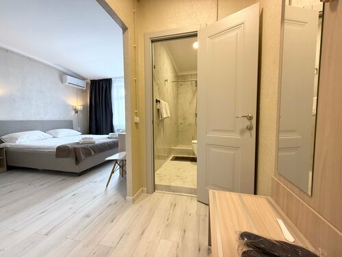 В «Эталоне» предоставляется Wi-Fi на всей территории. Есть бесплатные и платные парковочные места. Работают прачечная, химчистка. В бизнес-центре есть принтер, сканер, ксерокс. Обеспечена безопасность: есть охрана, видеонаблюдение, датчики дыма и огнетушители. Есть помещения для некурящих. Рядом есть место для парковки автомобиля. В жильё есть мебель для отдыха и работы, умный телевизор, фен, кондиционер, мини-холодильник, чайник, шторы blackout и банные принадлежности.