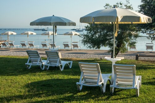 Отель в тихой бухте. Небольшой, но бассейном и неплохим питанием в ресторане. На ужине все напитки платные. Душ, туалет, лежаки на пляже - платные. Все приходят со своими "лежанками". Спуск в воду по лесенке - от нее дно немного расчищено от валунов, а так не зайти - крупные камни, но зато вода прозрачнейшая. Большая парковка, на экскурсии забирают из отеля и возвращают туда же. Вечером тихо. Контингент - пенсионеры.