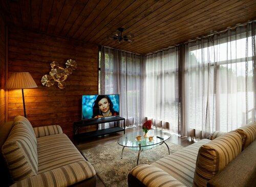 — то здесь можно найти свои плюсы: уютный домик на большую компанию, великолепный бассейн, тишину и красоту природы.