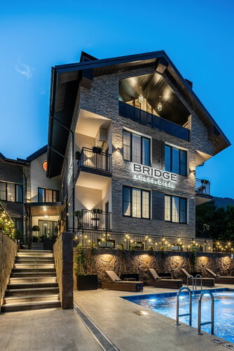 Апарт-отель Bridge предлагает уютную атмосферу и широкий спектр услуг. Здесь есть тренажёрный зал, терраса для загара, хранилище для лыж и открытый бассейн с подогревом. Для семей с детьми предусмотрены детские телеканалы и удобные условия проживания. В отеле работают ресторан и бар, предлагается обслуживание в номерах и завтраки по системе «шведский стол». Гости могут воспользоваться пляжными полотенцами и шезлонгами, посетить баню. Предоставляются гладильные принадлежности и трансфер до подъёмника. На территории обеспечена безопасность: работает охрана и видеонаблюдение. Рядом со отелем — сквер с спортивной площадкой.