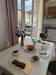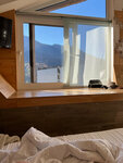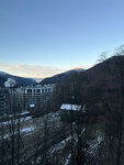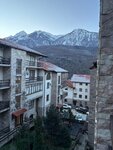 Рядом — магазины и кафе. Из номеров и с балкона открываются красивые виды на горы.