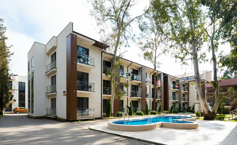 С удовольствием поделюсь своими впечатлениями об апарт отеле. Отдыхали конец июля -начало августа 2025 года. Замечательное месторасположение - до моря 5 минут, до аквариума 1 минута, торговые точки находятся за углом, наличие закрытой, ежедневно убираемой, хорошо озелененной территории! Номер был семейный -2 отдельные комнаты плюс кухня: Дизайнерский ремонт, хорошая мебель, качественная посуда, чистейшее белье и полотенце! В номере было все необходимое для полноценного отдыха! На любые вопросы отвечают в течении 2 минут!