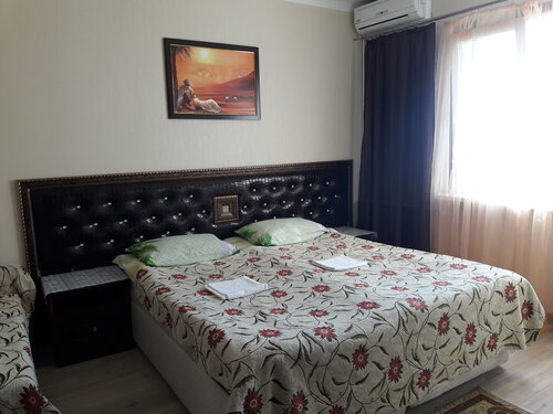 Отличное место! Чисто! Уютно! Тихо! Есть парковка на территории гостевого дома. Мангальная зона. Два батута для детей, большой и маленький. Отличный бассейн, чистые лежаки. Расположен от посторонних взглядов, но в тоже время если глянуть за детками, то достаточно выйти из номера на общую площадку этажа. Есть место в тени, где много зелени, даже в жару было приятно находиться на улице. Чистая кухня, достаточно посуды. Хорошая стиральная машина. Номер не большой со всеми удобствами, кровать удобная, санузел чистый, с новой плиткой. До моря не далеко, но мы ездили купаться в другие места. Станция очень близко, большой плюс. Так же рядом супермаркеты и маленький базар. Резких подьемов к гостивому дому нет. Вечерний шум от кафе заканчивался ровно в 23.00. Поездов не слышно. Хорошее место. Если ещё буду в Лоо остановлюсь точно тут. Хозяева очень приятные люди.