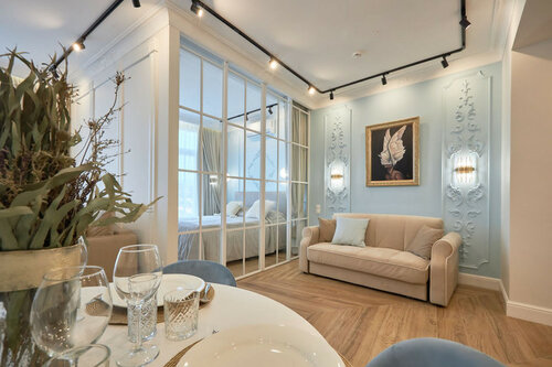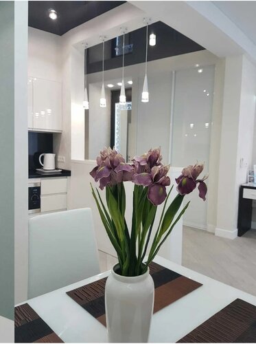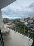 Шикарные апартаменты в самом центре Сочи. Отдыхали в номере 1206 в октябре 2025 г. Всё очень понравилось. Шикарный и обширный вид прям из спальни через открытый балкон на море и город. Очень удобное расположение: до моря минут 5 спуститься, кафе и рестораны на каждом шагу и прям в здании, такси до ж/д вокзала 200–300 р., минут 7 в пути, там есть «Ласточка», ходит каждые 30 минут, и на ней можно добраться в Имеретинский олимпийский курорт за 50 мин. и 208 р. От апартаментов до дендрария, цирка, морвокзала, «Ривьеры» пешком минут 10–15. Общественный транспорт тоже каждые 3 секунды ходит по Курортному проспекту, автобус 48 р. Жить в апартаментах гораздо удобнее, чем в отеле, так как есть машинка стиральная, сушилка, утюг с гладилкой, при необходимости и швабра пригодится, и уж если надо, и тазик есть. По еде вариантов масса: сходить в ресторан, кафе — они тут на каждом углу, и в самом ЖК «Барселона Парк» тоже есть и кофейня, и ресторан, и аптека, и цветочный магазин, и бьюти-студия, можно заказать доставку, купить самим в ближайших магазинах, огромный выбор как готовой еды, так и самим приготовить, например, стейк не проблема. В апартаментах 2 сковороды антипригарные, 3 кастрюли разных размеров, терки, доски, дуршлаг, эл. чайник, СВЧ печь, посудомойка с таблетками в придачу, губка и тряпочка с жидкостью для мытья посуды. Столовые приборы, бокалы под вино, чай, стопки, тарелки под 1,2 и салатники на 4 персоны, штопор и т. д. Холодильник, встроенный в мебель, очень красиво смотрится, и самое главное, что он полноценный с морозилкой. Вообще очень много места, шкафов, вешалок для одежды. Администраторы очень приветливые, вежливые и во всём готовы пойти навстречу. При заезде всё было чисто — претензий нет, полотенчики, тапочки, гель, шампунь. Телевизор смарт, можно найти всё, что любите. Два кондиционера на холод и тепло, если надо, также пол подогревается, в прохладное время года очень актуально. Техника вся работает исправно. Кровать очень мягкая, пастель хорошая, как в 5* отеле. Диван раскладывается легко, довольно большой на 2х точно хватит, спать на нем удобно. Обеденный стол раскладывается тоже.