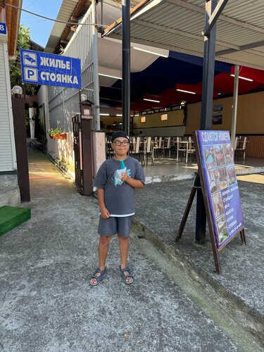 Очень приятные владельцы! Любой вопрос решается быстро. Во всех номерах стандарт кондиционер, в трёхместных номерах санузел с умывальником и душем, холодильник, в четырёхместных кухонная зона. Чисто, замена белья у нас была раз в пять дней. Есть мангальная зона, зона для костра, небольшой бассейн для детей где-то на 4 куба, столовая для самостоятельной готовки. Номера эконом не очень- мебель совдеп, кондиционера нет, санузел общий. Но над всем давлееет отличное отношение к посетителям!!! Также рядом общепитовские столовки, выше по улице небольшой продуктовый магазин. До Магнита пешком 7 мин, до аптеки 10 мин, до моря 7 минут.