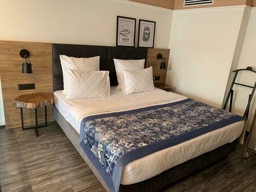 Номер «Делюкс» — это кайф, потому что там есть диван, на котором лежали мы и наши горнолыжные костюмы.