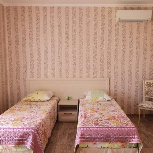 На территории гостевого дома всего 4 номера, поэтому тишь да гладь 🪷 Каждые 5 дней выдают свежее белье/полотенца. Есть стиральная машинка и утюг с гладильной доской в общем доступе. Кондиционер использовался почти постоянно и прекрасно справлялся со своей задачей. Матрасы удобные, ремонт качественный и свежий, потолки высокие, сантехника исправная, кухня укомплектована. Территория цветущая и есть, где посидеть вечером 🥂🍇 Вокруг нет кафе с громкой музыкой и толп туристов. Улица тоже тихая. Магнит, Пятерочка, набережная в 2 минутах 🔥
