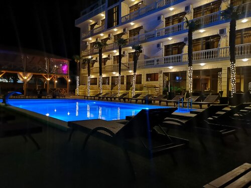 Выбирала отель по отзывам ,вообще в этот год отдыхали в трёх отелях ,решили проверить по отзывам несколько отелей. Итак : 3 дня отель Эвелин- нас встретили с поезда довезли до отеля бесплатно ,отель на оживленной улице ,рядом аквапарк ,магазин пятёрочка,ярмарка продуктовая,набережная вдоль реки , вообщем для трёх дней погулять рядом хватило, о самом отеле : нам нужно было два раздельных спальных места ,разъединили двухспальную кровать на две односпальные , матрасы требуют замены ,местами продавлены, с бугорочками, в номере есть гель для душа ,шампунь,мыло, в туалете часто пахло канализацией ,выдают пляжные полотенца на каждый день ,на пляже от отеля есть свое место под навесом ,это большой плюс, но когда много народа не хватает шезлонгов , бассейн с горками это тоже плюс,теплый , до 23 :00 можно плавать , рядом столовая мне не очень понравилась , вообщем не плохо в отеле , возможно приедем ещё !