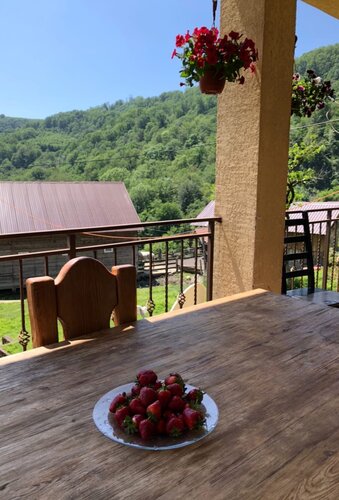 Уютный гостевой дом. Сюда приезжают любители верховой езды для комфортного отдыха. Гостеприимные хозяева. Кормят вкусно и много. )) Номера разные. У меня был улучшенный, с удобствами внутри. Есть попроще, когда душ и туалет на этаже. Кондиционер есть. Удобные кровати. Большая столовая с выходом на просторный балкон с мягкой мебелью и огромным столом. Утром, сидя в уютном кресле, смотришь, как встаёт солнце из-за гор и слушаешь петухов, которые встречают его своими песнями. Для городского жителя экзотика. )) Рядом с домом есть качели с видом на горы, есть место для барбекю. Остановка автобуса недалеко. До моря минут 20 езды, потом до пляжа столько же. До места купания в реке Восточный Дагомыс - 5 минут. Хорошее место для специфического отдыха: кони с утра, море или река - после обеда. ))