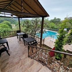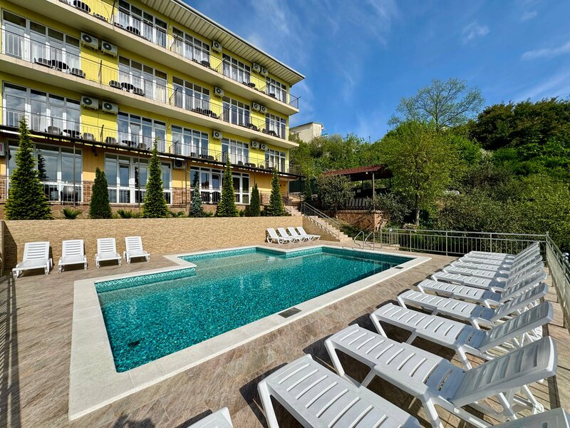 Находилась в данном гостевом доме с 1 по 9 октября 2025 г. Общее впечатление – мне понравилось. Это не дорогое проживание для туристов без завышенных требований. Замечательный управляющий – Любовь Викторовна, всегда на связи и готова оказать помощь в решении возникающих вопросов. Проживала одна в 2-местном стандарте с балконом. Чисто, опрятно, постельное бельё, два полотенца, жидкое мыло, туалетная бумага. Уборка 1 раз в 3–4 дня. Телевизор, кондиционер в рабочем состоянии, есть фен (не пользовалась), вода и холодная и горячая всегда в наличии. В номере большая кровать, двустворчатый шкаф с зеркалом, столик и тумбочка. Комната маленькая, если будут два бодипозитивных человека проживать, то будет тесно. На балконе: стол, два стула, табурет, натянуты веревки для сушки белья с прищепками. Мусор из номера выносится самостоятельно. Звукоизоляция в номере была хорошая, соседей я не слышала. Но балкон выходил в сторону общей кухни, т. к. получается «колодезный» эффект, то на самом деле, мешали шумы из кухни, отчетливо были слышны даже звуки нарезания чего-либо. Кухня общая, большая. Два холодильника, плита на четыре конфорки, две раковины, необходимые кухонные принадлежности в наличии. Есть выделенные места для курения. Два четырехэтажных корпуса. Естественно, в соответствие с ландшафтом везде лестницы для передвижения по территории, но не критично. Хороший бассейн. Очень красиво оформлена территория. Парковка чисто символическая: машины на три около забора вдоль проезжей части. К сожалению, на момент моего пребывания столовая не работала, но, практически в соседнем доме имелась столовая. Ходила туда два раза завтракать, меню разнообразное, но не дешево, например: тарелка каши – 150 руб., сырник – 100 руб., яйцо вкрутую – 50 руб., стакан компота – 80 руб. Не далеко находится магазин Пятерочка. Месторасположение дома в крутую горку, для меня было бы очень проблематично добираться от основной улицы до места дислокации, но, как и заявлено, ходит бесплатный автобус, с 1 октября один раз в час, с 9.00 до 20.00.