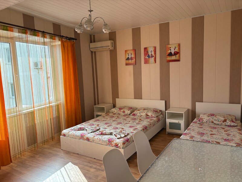 Рядом — аптеки, рынок. До моря — 2–3 минуты пешком. Недалеко есть настольный теннис, на пляже — ночная дискотека.