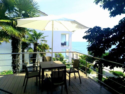 Из плюсов: очень удобная транспортная доступность, низкая проходимость и поэтому мало людей, номера чистые уютные, отзывчивый админ да и весь персонал, своя небольшая, но очень приятная территория, близость к морю (спишь почти на пляже, море приятно убаюкивает все ночь), полы с подогревом!, сантехника работает исправно, в номере чайник, на этаже утюг с доской, удобные балкончики - приятно наслаждаться закатом сидя в удобном кресле и попивая чай, обернувшись в пледик; удобные кровати.