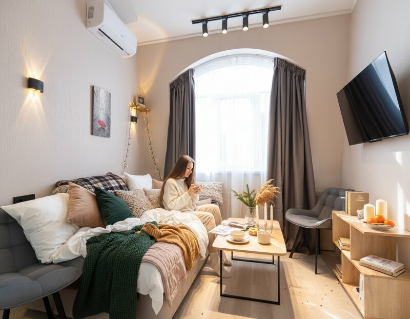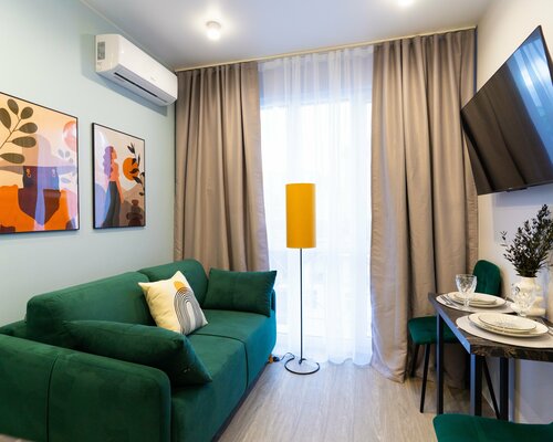 В «LETOAPART» есть Wi-Fi со скоростью 100 Мбит/с, телевизор, кондиционер. Предоставляются постельное бельё, полотенца, ванные принадлежности, чай, кофе. Есть стиральная машина, водонагреватель, микроволновая печь, чайник, однокомфорочная плита, электроплита, сушилка для белья. Имеются фен, гладильная доска, утюг, столовые приборы, набор посуды. Предусмотрены детские телеканалы и детектор дыма. Машину можно оставить на бесплатных местах для стоянки рядом. Заселение возможно для лиц старше 21 года.