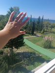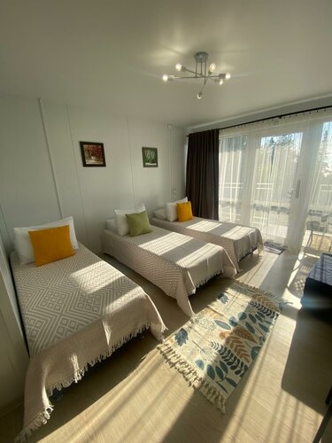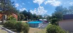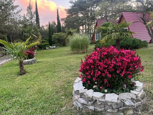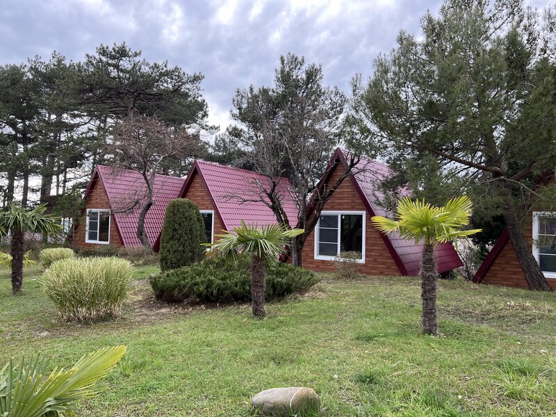 В прошлом году снимали номер в гостинице. Номер понравился: чисто, уютно, панорамное остекление в сторону моря с балконом или террасой, хорошая кровать, мебель и техника. Однако, если плотность заселения высокая, сказывается недостаток шумоизоляции. Также, определенно не хватает противомаскитной сетки. В этом году сняли домик А-Фрейм. Здесь ещё более комфортное внутреннее пространство и спокойная звуковая картина, с преобладанием хора цикад, шелеста ветра в кронах деревьев и, иногда, шума прибоя. Окно с противомаскитной сеткой. Территория ухоженная, красивая, с цветочными клумбами и зелёной травой. Имеется летняя кухня, в том числе с русской печью (рабочая или декоративная не знаю, не пользовался), беседка с мангалом, турник, качели, бассейн. Днём несколько раз наблюдали работу аниматора с детьми. Сложилось впечатление, что детям было очень интересно, они были увлечены. Один раз, как нам показалось, проходили занятия по математике).