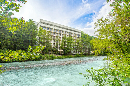+ местоположение отеля: есть куда сходит кроме отеля (Тисо-самшитовая роща в шаговой доступности и дача Сталина - можно на автобусе или на такси)