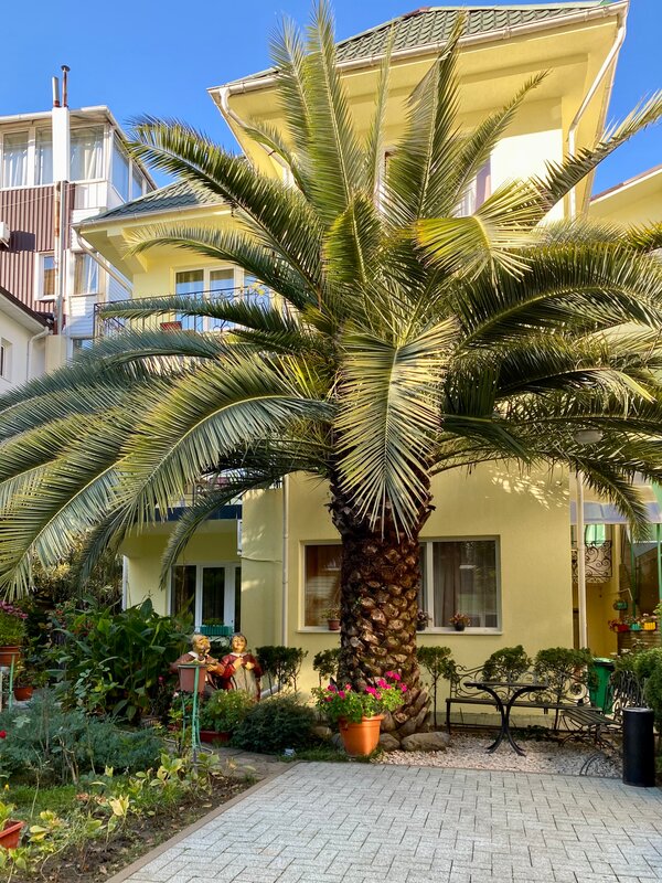 Хочу оставить свой отзыв, у нас последний день отдыха здесь. Нам всё понравилось, всё что надо и всё к чему привык дома в номере есть - телевизор, кондиционер, санузел был у нас в номере. Мы отдыхали на 3эт , номер с балконом. Вид просто волшебный, пальма это вообще нечто. Двор весь в зелени, растения все просто супер. Кухня небольшая, но так продуманно всё организовано там. Рядом на улице столики под пальмой и др растениями, где можно покушать или просто под чашечку кофе поболтать посидеть. Везде чистота и порядок. Море рядом, это +, столовые на выбор, магазины, сувениры всё просто руку протяни👍так близко. Можно много описывать, но советую приехать и всё самим увидеть. ГД "Пижама" это то место, куда хочется вернуться снова. Кстати нашла просто в интернете, понравилось название, прикольное 🤗Владу большое спасибо за наш отдых, всё 👍👍