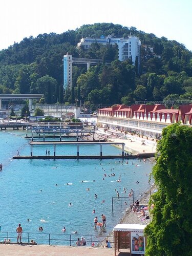 Рядом с отелем РЖД станция ХОСТА, чтобы не беспокоили поезда, то сразу спланируйте свой отдых, так чтобы ваши окна не выходили на сторону станции. Так же хочу отметить, что возле отеля «уставшая» набережная, надеюсь , что в скором времени, там пройдёт реконструкция.