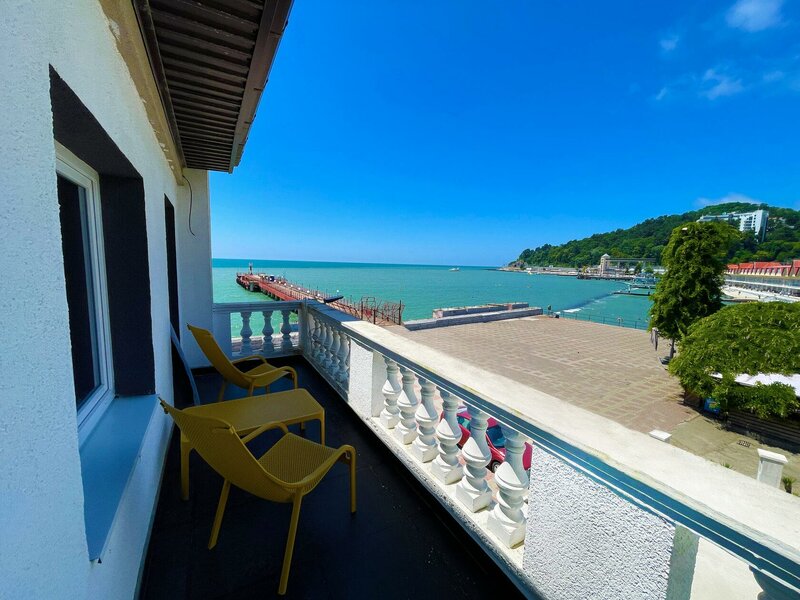 Отель находится в бывшем здании морпорта. Отреставрировали его пару лет назад. Жили в люксе 2 суток. Мы заселились с дочкой в номер с балконом, который имеет боковой вид на море, ржд путей не видно и не слышно, так сказать. В номере удобная кровать, подушки, неплохой санузел. Ремонт неплохой , в номере всё современно. В отеле есть выход на смотровую площадку, так назовем это, там гости имеют возможность посидеть за столом выпить кофе , вино, кому как угодно, полюбоваться закатом. Это круто.