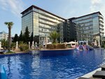 Бассейны чистые и пляж тоже, это радует, следят за детьми хорошо, но в первый день спасатель в большом бассейне наорал на нас чуть ли не матом, только из-за того что бы зашли в бассейн без родителей (мы были первый день и правил не знали), я не понимаю, в чем проблема была нормально сказать, мужчина лет 20-30 с короткой стрижкой в очках и с бородкой. Мы не подходили к горкам, а просто стояли в воде по пояс на лестнице, людей толком не было, горки были отключены, почему этот мужик так на нас наорал, мы не поняли.