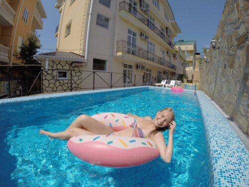 В «Сан Сочи» предлагаются помещения со сплит-системой, телевизором, холодильником и электрочайником. Есть открытый бассейн с подогревом, сауна, зоны отдыха и барбекю. Во дворе — уютный зелёный дворик. Конференц-зал оборудован для проведения мероприятий. Можно заказать трансфер. Есть возможность проживания с животными (платно, с ограничениями по весу). Также имеется прачечная. Рядом с жильём — магазины, аптека, до моря можно дойти за 10 минут.