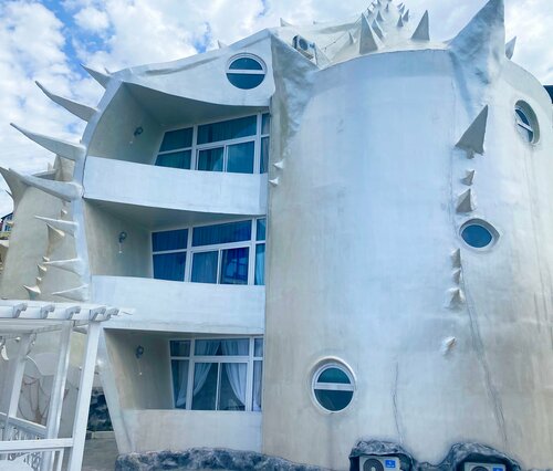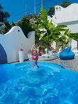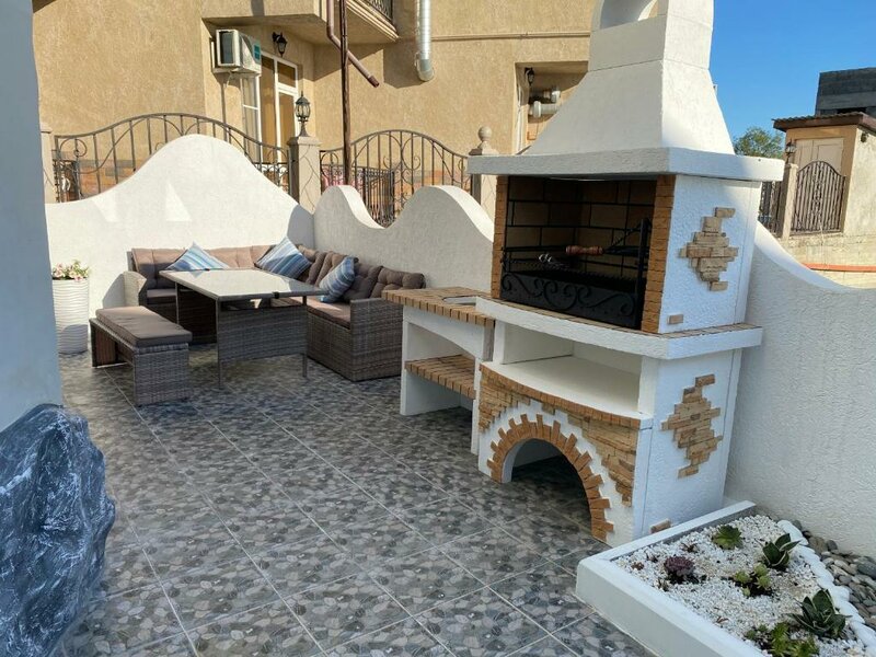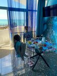 Интерьер очень необычный, точно запомниться, для фотозоны просто огонь!!! Очень доброжелательный персонал, все рассказали, показали! Номер и вся зона отеля чистые, приятно, что за всем следят и убирают! Близко к морю, через дорогу аквалоо. Минут 5-10 пляж горный воздух, так же можно ходить на пляж в аквалоо, это 2 минуты. Бассейн небольшой, но искупаться приятно и детям и взрослым! Есть зона барбекю, так же для нас был большой плюс! Нам все понравилось, большое спасибо!!!