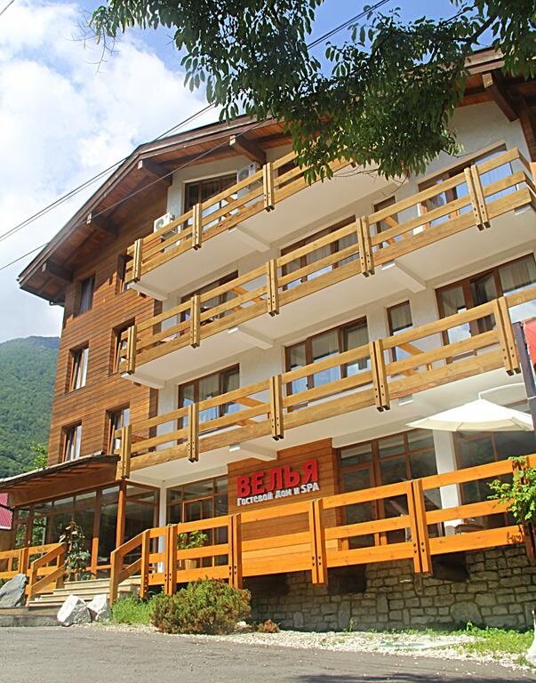 В гостевом доме «Велья» вас ждут уютные номера с ванными комнатами и Wi-Fi. На территории есть русская баня, сауна, хаммам и купель с ледяной водой. Ресторан предлагает блюда европейской, кавказской и русской кухни. Предоставляется бесплатная парковка с видеонаблюдением. Можно воспользоваться прокатом горнолыжного снаряжения, треккинговых палок и ковриков для йоги. Для отдыха — мангальная зона и беседка на берегу горной речки, детская площадка. Возможно размещение с питомцами по согласованию с администрацией. Из номеров открываются виды на горы.