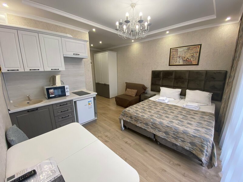 До моря — всего 200 метров, рядом инфраструктура: магазины, остановки общественного транспорта.