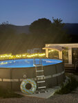 Вечер стал настоящей сказкой: душевный фильм под открытым небом, пение птиц (да-да, вечером тоже!), бескрайнее звездное небо... И теплый бассейн! Это был момент абсолютного счастья и умиротворения. Утром выйдя из домика в 6:00 на зарядку, я словила дзен, солнце, оно прям обнимает тебя, возвышаясь над пушистыми вершинами гор.