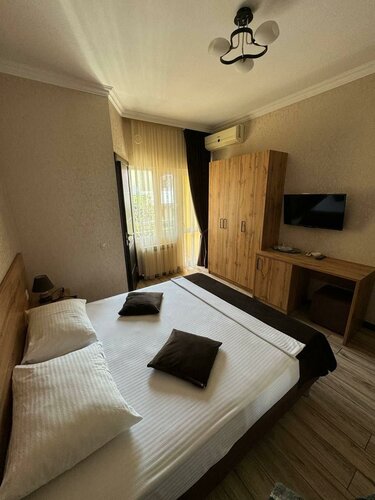 Есть пепельница, столик и две табуретки на балконе(целая только пепельница, мебель очень уставшая) , в номере ни стола ни стульев,под них не хватило бы места. Кондиционер ооочень уставший, дует только с самым мощным режимом и только горячим воздухом. Благо в номере достаточно прохладно само по себе было. (было начало июня и номер не с солнечный стороны). Часто пишут что близко к морю, да, это так. Но пляжик там не очень, рядом жд и куча бетонных сооружений, где любят выпить. Сам пляж вроде чистый, если не смотреть в сторону бетонок. Рядом достаточно магазинчиков. Неподалёку пятрочка и магнит. В целом радует что достаточно чисто, ночью не особо шумно. Душ работает, горячая вода не сразу, но есть. В гостевом доме ходит горничная Ольга, у которой можно спросить, попросить или узнать что-либо что определённо плюс. Если нужно поспать да помыться, то самое оно. Но наверное есть варианты ещё дешевле для цели чисто поспать.