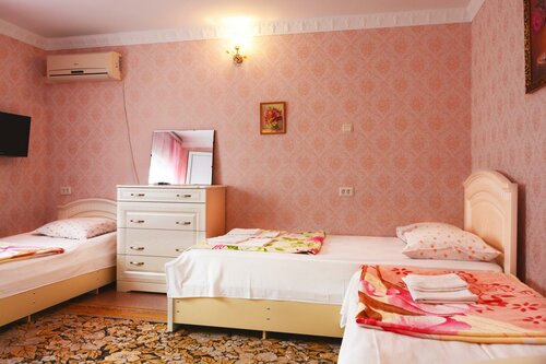 Хороший гостевой дом: чистенько, уютненько,тихо.От моря недалеко: мин.5-7 пешком. Для неизбалованных туристов.Имейте ввиду,что предоставляется только жилье.В номерах при заселении есть полотенца,посуда,кондиционер,холодильник и телевизор. Туалетную бумагу, мыло и питьевую воду будете покупать сами,что неприятно удивило.Не очень удобно таскаться с 5 литровками,до этого где отдыхали,везде уже кулеры имелись в наличии. Занимали номер на 4х с балконом,на 4 этаже, в туалете пахло канализацией,видимо проблемы с вытяжкой.Общей кухней не пользовались,ели в столовой.