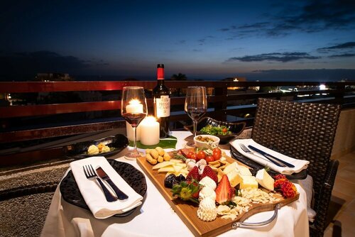 В гостинице есть ресторан, бар, тренажёрный зал, сауна, конференц-зал. Можно прогуляться по территории и в саду. И вы наверняка захотите отдохнуть у бассейна — он тут тоже есть. Причём открытый, с подогревом. Море тут близко — до него всего 430 м, поэтому легко можно планировать пляжный отдых. Есть возможность взять напрокат машину, велосипед.