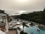 Прекрасный отель, отличное и разнообразное питание, просторные номера. Но... В номерах ванна посреди комнаты, душ и туалет отгорожены стеклянными дверьми - матовыми, но при этом непонятно закрывающимися и не доходящими до потолка - в итоге включаешь свет, и свет бьёт в глаза спящему, ну и звуки... Романтик точно будет испорчен...