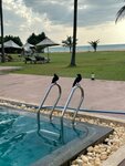 Сам отель на фото выглядит гораздо лучше, чем на самом деле. Мебель обшарпана и в пятнах, двери на балкон закрываются плохо и неплотно через щель залетают москиты. Территория отеля небольшая. На территории проживают несколько кошек и две собаки, животные мирные, но не комфортно когда под лежаком постоянно спят собаки, а кошки трутся около столов во время еды.