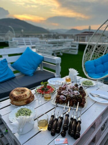 В номере стоят кружки, но ложек чайных нет, постельное белье белое, но запах у белья затхлый, до конца не высушенный пододеяльник, правда мы поняли это когда уже легли спать, укрылись а он влажный.
