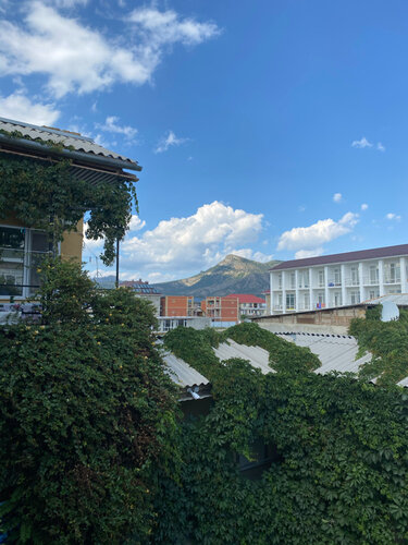 Парковки как таковой нет, на дороге вдоль дома. Номер в котором жили трёх местный, в номере шкаф,телевизор, комод, холодильник, тумбочка, кондиционер. Маленький санузел , на унитазе сидишь боком, раковина очень маленькая на уровне колен. До моря минут 15 , 200метров по пыли. Есть импровизированная кухня.Добыть кипячёную воду можно только чайником на газу. Услуга стирки 100 руб(самая мутная), бельё отдаёте хозяйке, она его куда-то уносит, где-то стирает и после возвращает. И самый большой минус курящие люди, в этом доме разрешают курить везде(кроме номеров), с открытым окном жить невозможно. Хозяева приветливые, но психованные!!!
