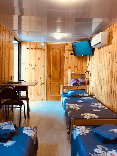 «Судак-Тудак» предлагает уютные домики на 2–3 человека. В домиках есть ванная комната, кондиционер, телевизор с онлайн-кинотеатром. На территории — общая кухня, мангальная зона, шезлонги, парковка, площадка для пикника. Есть гладильные принадлежности, стиральная машина (платно), зона для барбекю, ухоженный двор с ночным освещением.