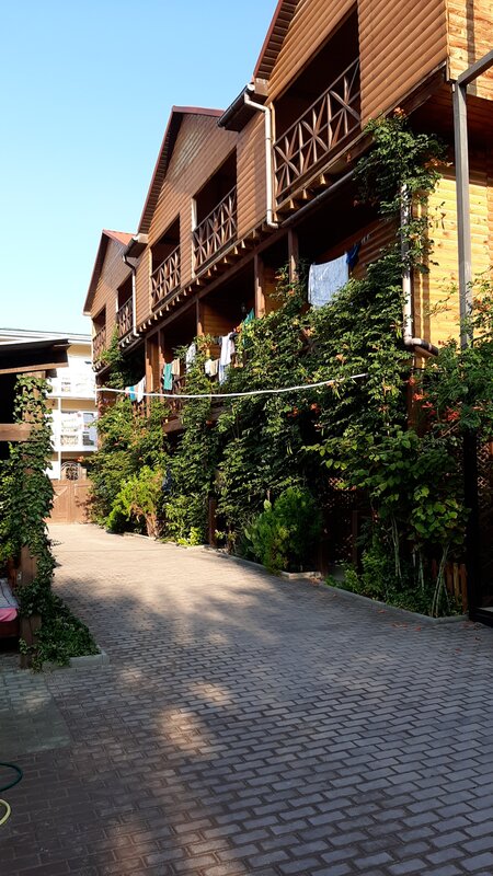 Приветливая хозяйка Лида. Хорошие номера. Чистота! Есть шкаф, большой телевизор, холодильник, посуда. На балконе - стол и табуретки. Газовая плита, гладильная доска - общие во дворе.