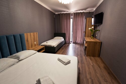 Отдыхали в этом новом отеле в Сухуме в сентябре семьёй. Место очень спокойное, первая линия до моря буквально пару минут. Пляж мелкогалечный, чистый, вода прозрачная, и особенно приятно, что людей на берегу немного.