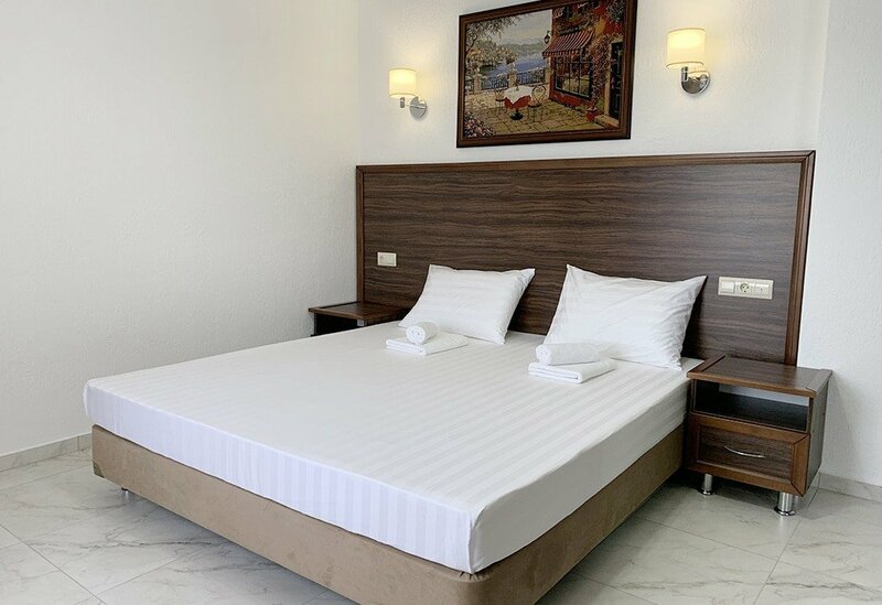 Хороший, чистый номер (не только спальня, но и санузел)! Исправно работал кондиционер, девушки приходили каждый день, совершали легкую уборку. Полотенца меняли каждые 3 дня, белье раз в 5 дней. Удобная кровать, в номере нет балкона, но есть сушилка для белья, мини холодильник. На каждом этаже доступный кулер с водой, есть гладильная доска и утюг, всегда можно воспользоваться. До моря недалеко, минут 6 пешком, совсем рядом находятся продуктовые магазины и лавки с фруктами/овощами. На территории есть кафе, очень вкусно готовят, по домашнему, посуду даже можно забирать в номер.