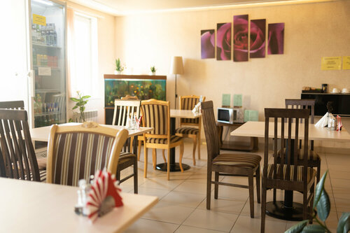 В целом сама гостиница хорошая, чисто, уютно, но в номере было холодно, попросила обогреватель, но у гостиницы их нет, дополнительного одеяла в номере тоже не было. В самой гостинице нет кафе, еду заказывают из другого отеля, но есть импровизированное место для приема пищи, можно купить чай, кофе и разогреть еду. Вокруг гостиницы нет никаких кафе/баров/ресторанов, ближайший магазин примерно в километре.