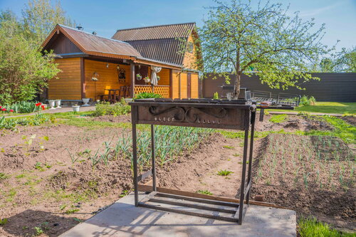 Очень хочу оставить объективный отзыв без лишних эмоций. А они были-и в плюс, и в минус. Цветущие вишни, тюльпаны и нарциссы, все чистенько, есть посуда, отличный стол и стулья на свежем воздухе и мангал со всем необходимым. В общем, выходные за городом в полном смысле этого слова. Минусы-они есть к сожалению(. Во первых это скорее баня с прилегающими комнатами, ну или очень малюсенький домик с потолками на уровне глаз. Во-вторых- на втором этаже это не кровать, это вероятно раскладной диван, потому что через некоторое время первой ночи спина умерла, а под поясницей оказался стык, как на раскладном диване. Ну, и, коль скоро это диван-то там не матрас, а поролон. Не сильно толстый и без всяких там пен, ортопедов и тд. Спину пришлось приводить в себя(. Угол красный напротив входа на первом этаже- мои дети с ужасом спрашивали, что там страшное. Вдруг какая икона строгая или еще что-то пугающее. Я предположила что там камин, а муж просто заглянул и увидел пену-строительную, то есть это аранжировка недоделанного угла. Но самое неприятное-на следующее утро после дня приезда мы увидели у себя во дворе домика…. Человека который ремонтировал дорожки. Он завез мешки с бетоном, огородил участок палками. Я аж поперхнулась- а как Вы тут? Мы же отдыхаем. Оказалось, что свободными оба домика практически не бывают и вот хозяева решили подремонтировать свой участок. Я возмутилась, сказала что мы не планировали ехать пять часов чтобы наблюдать на 9 мая ремонт. Через минут тридцать работник ушел. А осадочек остался(((. Так что когда матрас в кровать купят человеческий, угол доделают, дворик подмажут— и вероятно будет ок. Да, на 9 мая не показывал ТВ и не ловил интернет. Чуть не остались без парада. Но пришли те кто обслуживает домики и починили. Вот так…..
