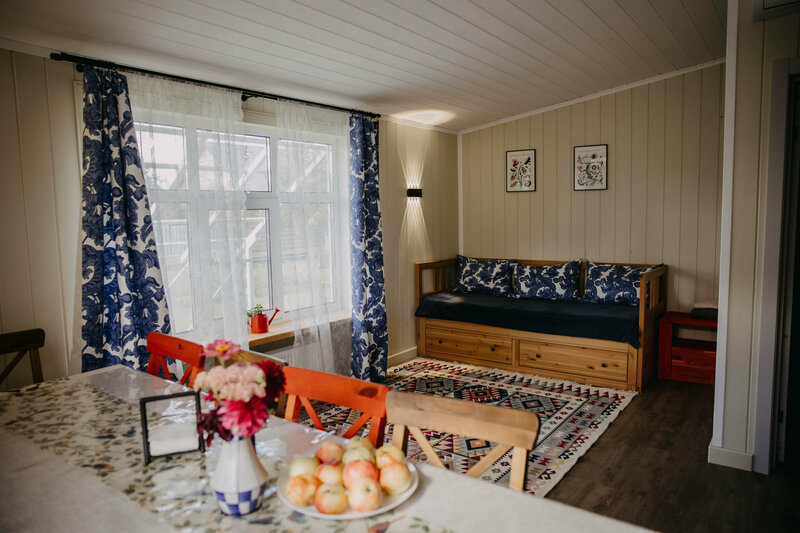 «Синяя синица» предлагает комфортное размещение в тихом месте. В доме три комнаты и три спальни, вмещается до четырёх человек. На территории есть детская площадка, мангал, фруктовый сад и терраса. В номерах есть кровати, постельные принадлежности, ЖК-телевизор, кондиционер, Wi-Fi и другие удобства.