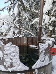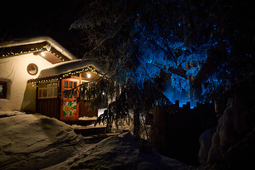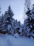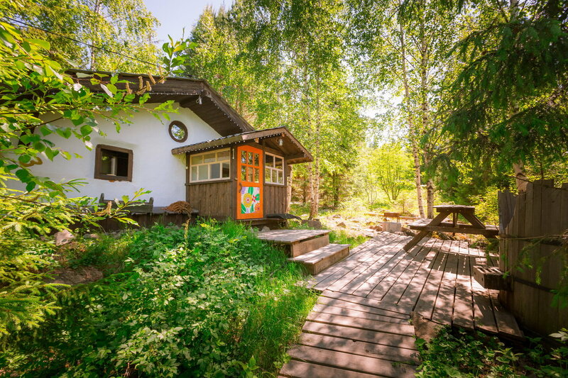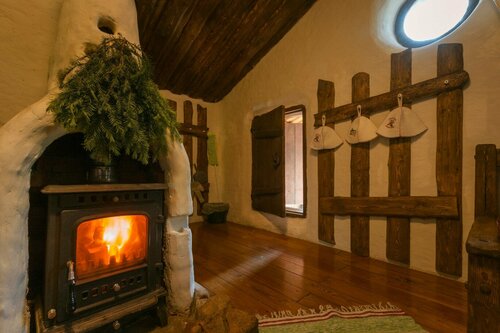 В домике уютно,стилизовано под сказку. С водой напряжёнка, помыться не удалось, вода нагревается от печки, топили всю ночь, к утру стала едва теплой,может,что-то не так делали,выяснять не стали. В любом случае, бак маленький в мини-душевой, из душа вода льется по нитке,как-то не повезло в этом плане.