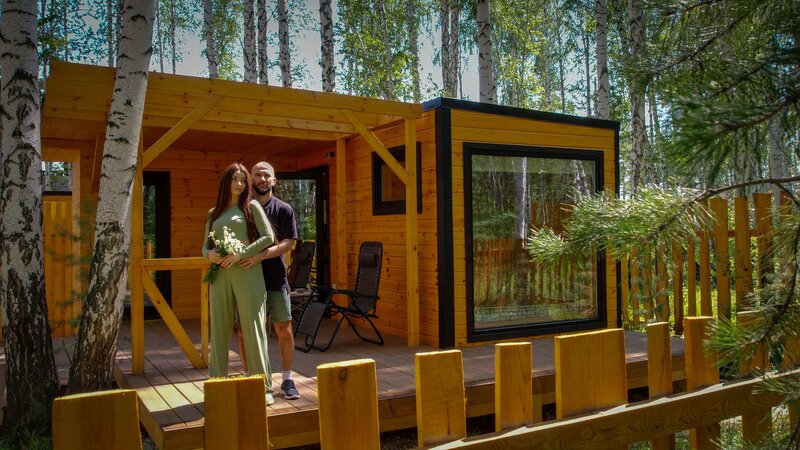Самый тёплый дом 2х этажный, поскольку баня 1й этаж, жилое на 2м этаже. Во всех домах есть уличные герлянды, мангальные зоны чистые, решетки шампура и опахало в наличии. Мы весь кейтеринг привезли с собой от сахара и кофемашины, мясо в барбитах и решетки с розжигом и углем, до бокалов 0,75l из нержавейки до бумбокса из денд крузера с лазеиным шоу. На базе юзали только 3 кружки и немного приборов. При заезде 100500 подписей за всё и вся и еще залог, то ли расчитано на непонятный контингент, то ли юрист с юмором, приложения о перс данных по новым правидам при этом нету). На ночь територия закрыта. У домиков есть свой выход в лес, в лесу тропинки и лавка. Баня без приточки, жарко, душно и металлическая ручка в клозет)))