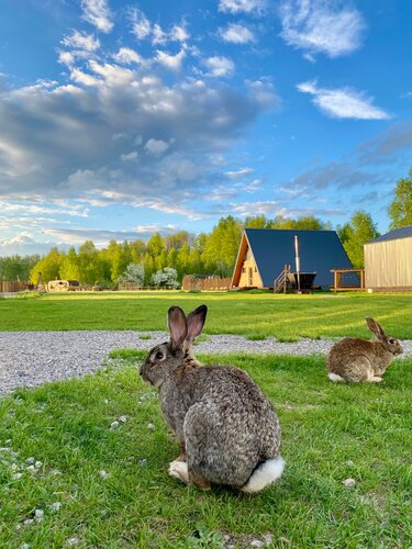 Все на высшем уровне, к каждой детали было особое внимание, ребята следили за всем "от" и "до". Маленький уютный домик с кондиционером, большой джакузи для двоих, всей необходимой посудой. Порадовало чистое постельное и набор полотенец для каждого, плюс кухонные полотенца. У домика достаточно удобная терраса с двумя реечными креслами и столиком, так же на территории у домика есть большой стол с двумя лавками. В общем все продуманно для суперского отдыха как в домике или террасе, так и на травке возле уточек и кроликов.
